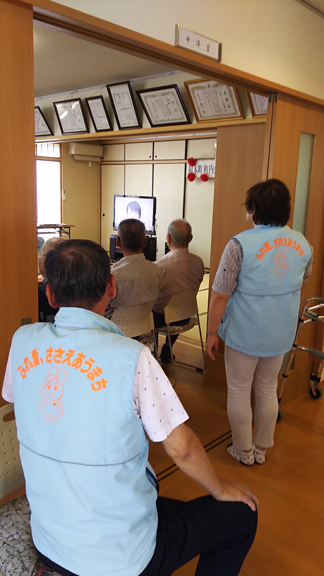 敬老の集いは70歳からなので、一番若い方が70歳ですが、参加された方の中の最高齢の方が、96歳でしたので、30歳近くの年齢差がありました。みなさん、和気藹々とされていて、見ている私たちもとても心和む時間を共にさせて頂きました。特に最近の災害の報道もあり、尚更、命の尊さが身に沁みました。
