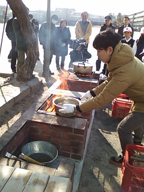 無事(?)アルファ米の五目御飯を食した後は、教室に移動して、図上訓練。学区内の避難所、避難経路等を確認するものです。今回は、立命館大学の韓国からの留学生約10人が参加されていて、一緒に図上訓練しました。皆さん、日本語が上手で、ほとんど会話は支障なく色々と韓国のことが聞けました。まずは、韓国には、地震がないので、避難訓練というものはない、こと。その代わりに、戦争を想定した、訓練を月に一度、行われている、ということでした。ですから、炊き出しのようなことは、敵にみつかるので、韓国では訓練で行うことはなく、皆さん、初めての経験であった、とのことでした。また、地震の経験がないので、地面が揺れる、という感覚がわからない、ということも言っておられました。こんなに近いのに、これだけ、違うということも発見です。